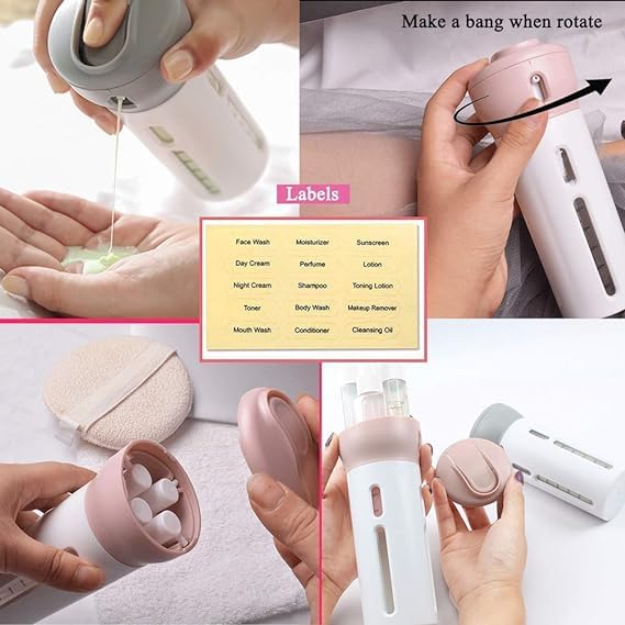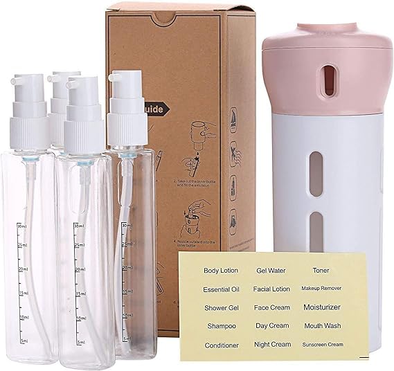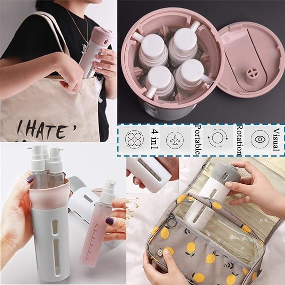 - ★ تصميم فريد 4 في 1: اجمع بين 4 زجاجات سفر قابلة لإعادة الملء في شنطة واحدة