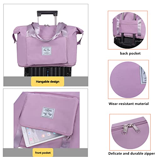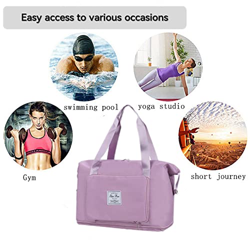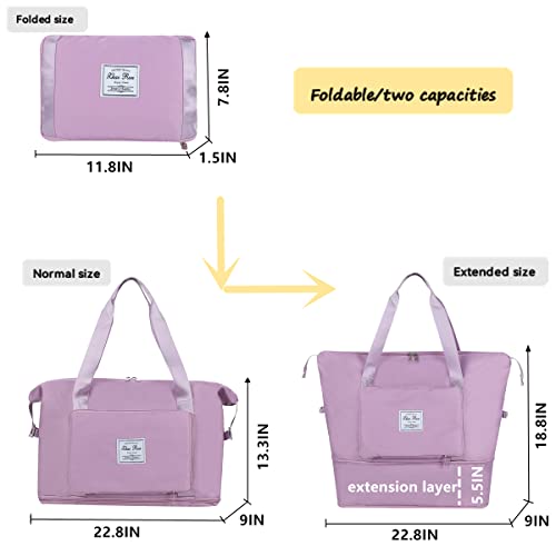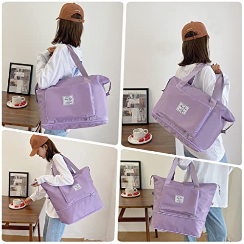 mezhsa - شنطة سفر كبيرة قابلة للطي والتوسيع، شنطة كتف خفيفة الوزن لعطلة نهاية الاسبوع والخروج الليلي للنساء، ومناسبة كشنطة رياضية لصالة الالعاب الرياضية - 23 بوصة, أرجواني، نايلون، من ميزا