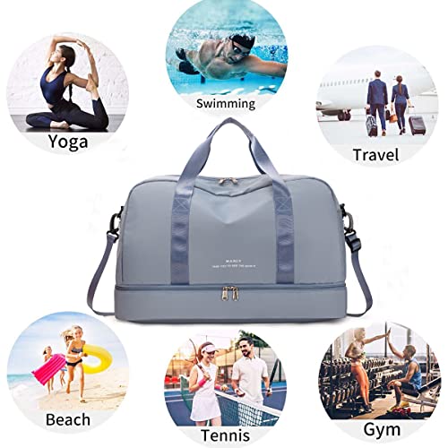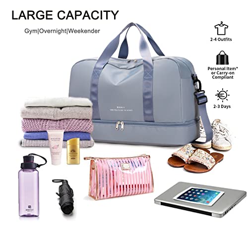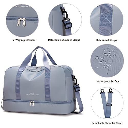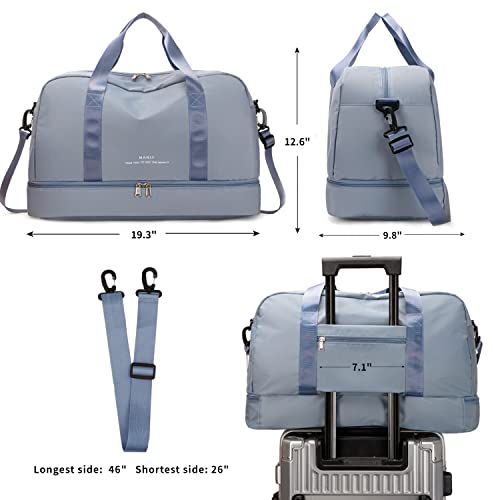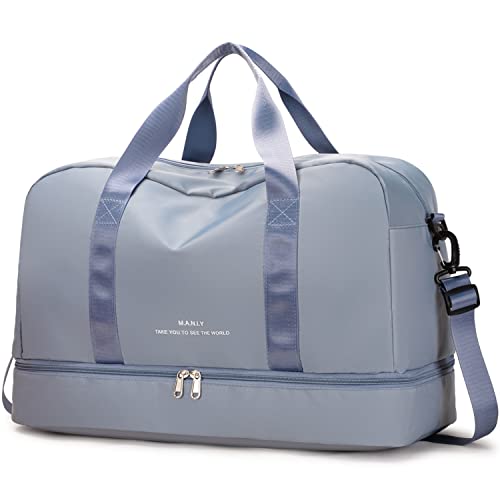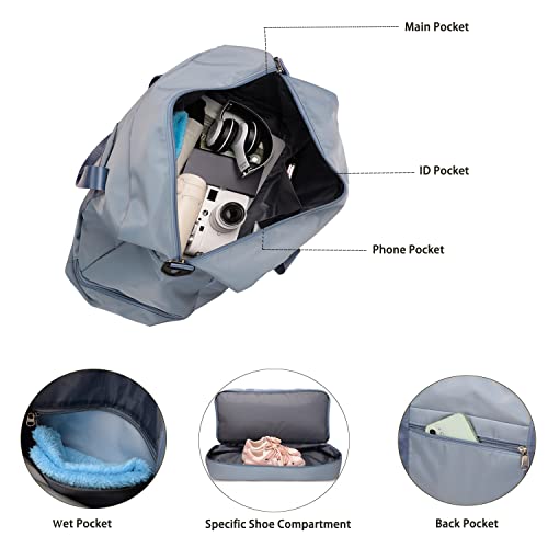 Siudaro - شنطة سفر من القماش الخشن كبيرة الحجم لعطلة نهاية الاسبوع للنساء حمل للرياضة وصالة الالعاب الرياضية مع جيب للحذاء وجيب مبلل شنط مستشفى خفيفة الوزن للعمل والولادة ازرق