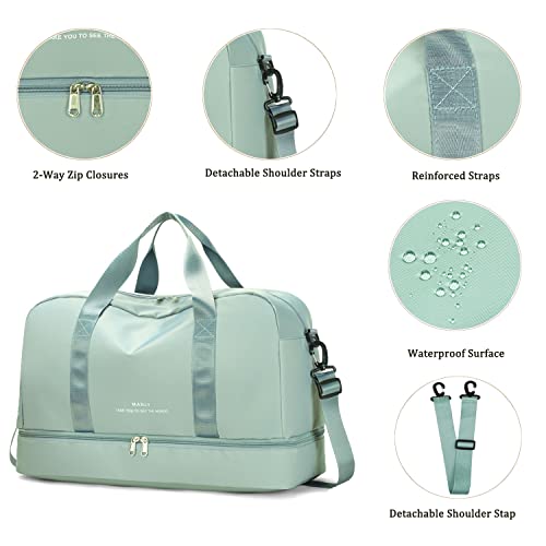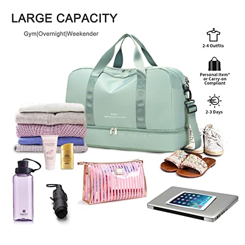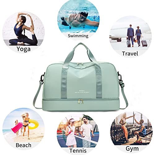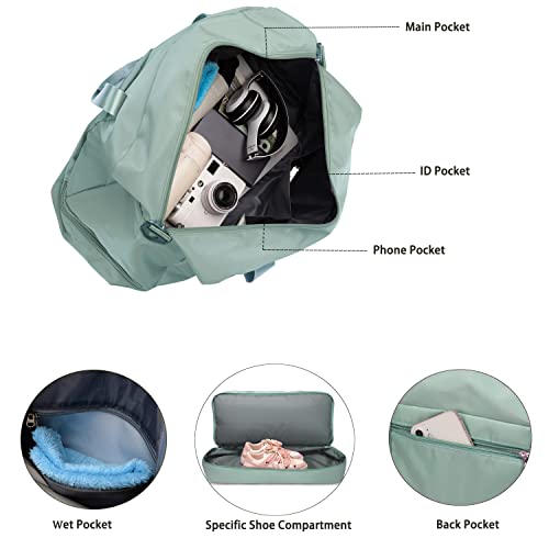 Siudaro - شنطة سفر من القماش الخشن كبيرة للنساء لعطلة نهاية الاسبوع، شنطة حمل للرياضة وصالة الالعاب الرياضية مع جيب للحذاء وجيب مبلل، شنط مستشفى خفيفة الوزن للعمل والولادة، اخضر