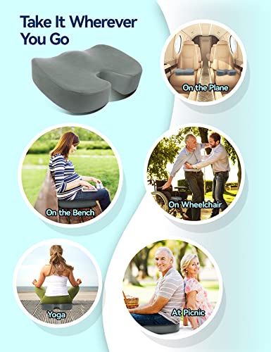 Travel Ease - وسادة مقعد سميكة على شكل حرف U، وسادة مقعد مريحة من الميموري فوم للأشخاص الأكبر حجما، تناسب كرسي المكتب ومقعد السيارة وكرسي الألعاب من ترافل ايز (رمادي)