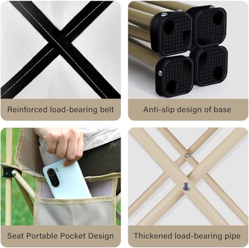 - هيكل قوي ومتين: مصمم بإطار معدني مقوى وقماش عالي الجودة، يدعم الكرسي وزن يصل إلى 130 كجم. يفتح ويغلق بسلاسة للاستخدام المتكرر دون تشوه، مما يجعله مثاليًا لكل من البالغين والأطفال.