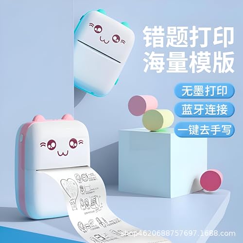Generic - طابعة بلوتوث مناسبة للسفر، جهاز صغير وخفيف الوزن لطباعة الصور والتذكيرات والرسومات والملصقات على الفور، تعمل بمنفذ USB، لون وردي وأزرق (Baby Blue)