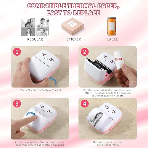 - يعمل استخدام تقنية الطباعة الحرارية على التخلص من الفوضى المرتبطة بالحبر أو الخراطيش أو الانسكابات، مما يتطلب فقط إدخال لفات الورق الحراري، مما يجعلها مثالية لصنع الهدايا الشخصية أو الملصقات التعليمية أو التذكيرات السريعة.