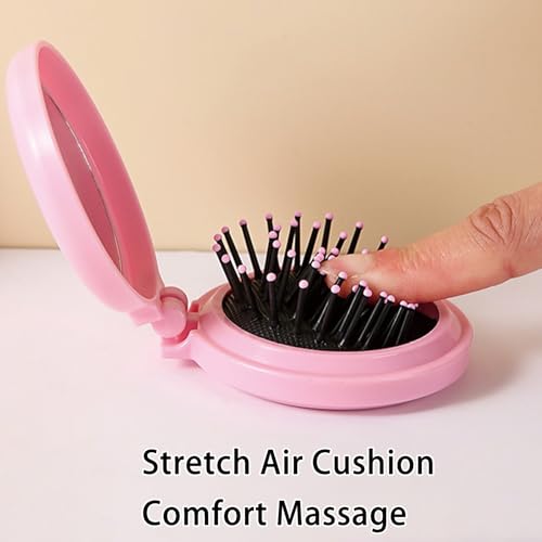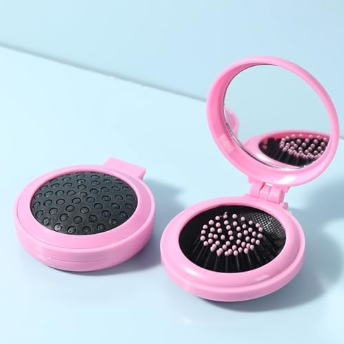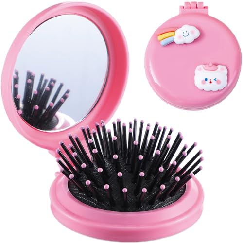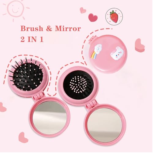MaoMaoCha - فرشاة شعر للسفر مع مراة محمولة وقابلة للطي، مشط شعر صغير لطيف للمحفظة، مراة مكياج صغيرة وفرشاة شعر للنساء والفتيات