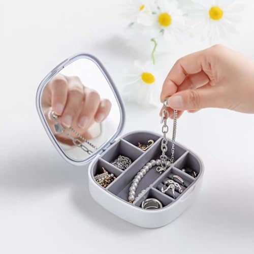 Generic - صندوق مجوهرات للسفر، صندوق تخزين مجوهرات محمول مع أقراط مرآة، صندوق تخزين أحمر الشفاه وقلادة وأقراط مجوهرات (رمادي)، بلاستيك