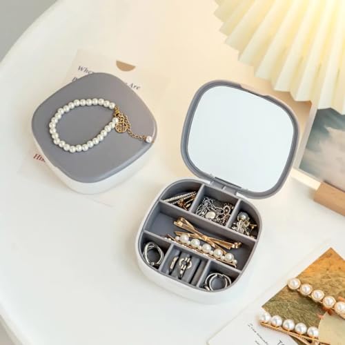 Generic - صندوق مجوهرات للسفر، صندوق تخزين مجوهرات محمول مع أقراط مرآة، صندوق تخزين أحمر الشفاه وقلادة وأقراط مجوهرات (وردي)، بلاستيك