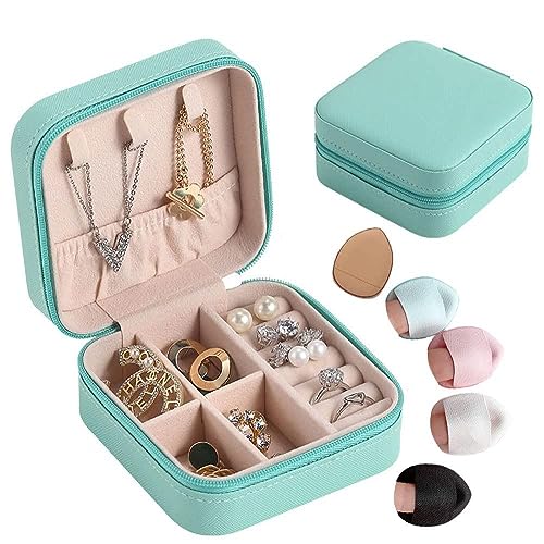 Spaceshoop - منظم مجوهرات للسفر، صندوق محمول من الجلد الصناعي بقطر 4.5 بوصة للأقراط والقلائد - للبنات والنساء - واندا.ستور⚜️، جلد صناعي، متعدد الألوان