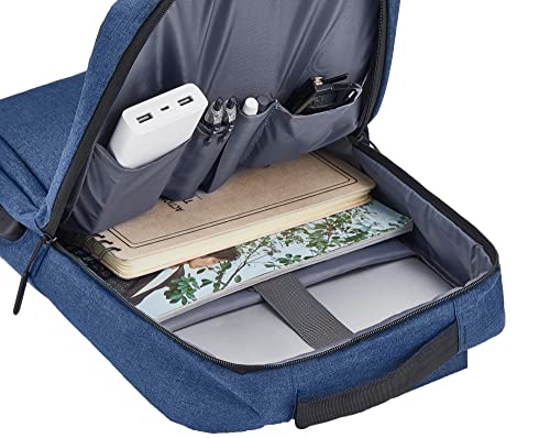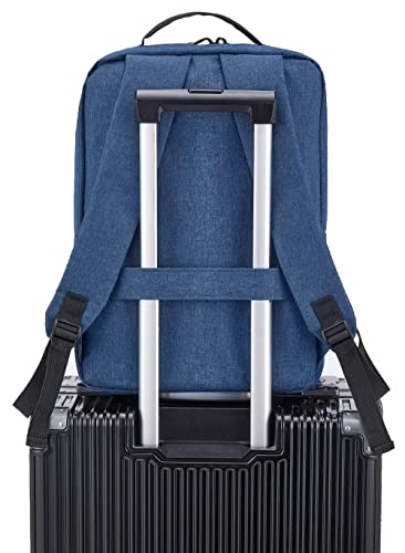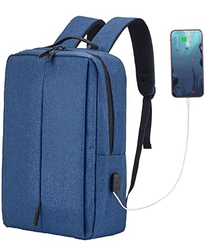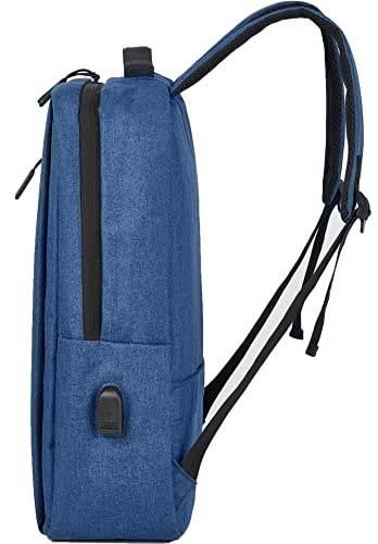 BRASS TACKS Leathercraft - شنطة ظهر للابتوب للسفر مضادة للسرقة بتصميم رفيع ومتين مع منفذ شحن USB كمبيوتر مقاومة للماء مقاس 15.6 انش لون ازرق حقائب يومية من براس تاكس ليذر كرافت