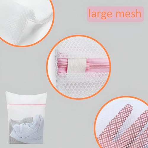 - أكياس الغسيل الشبكية جيدة التهوية هذه مصنوعة من ألياف البوليستر المتينة، مما يسمح للماء والمنظفات بالدوران بحرية مع حماية الأشياء الحساسة مثل حمالات الصدر والملابس الداخلية والجوارب من العوائق والتشابك أثناء الغسيل في الغسالة، مما يضمن عمر أطول للملابس.