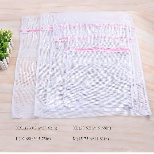 Generic - منظم غسيل للسفر - 5 اكياس شبكية كبيرة بلون بينك مع سحاب لحمالات الصدر والملابس الداخلية والجوارب والملابس الرقيقة من البوليستر، 30 × 40 سم، سهلة التعبئة والغسيل