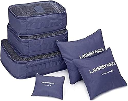 Generic - طقم منظمات شنط السفر مكون من 6 شبكية لتصنيف ملابس وشنطة للحذاء للغسيل بلون كحلي البوليستر متعدد الألوان