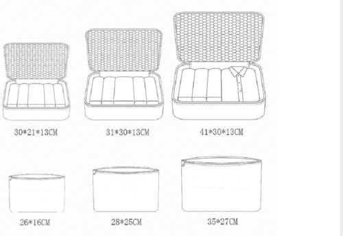 - طقم من 6 حقائب، يمكنه تلبية متطلبات 7-10 أيام من لوازم السفر، ويمكن استخدامه مع حقائب السفر العادية حجم 20 بوصة وهي مملوءة.