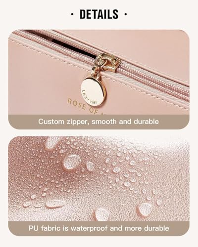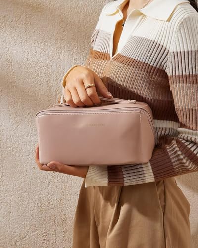 Generic - شنطة مكياج للسفر، شنط مستحضرات تجميل بسعة كبيرة للنساء، شنطة جلدية محمولة مقاومة للماء مفتوحة ومسطحة لتنظيم ادوات الزينة ومستحضرات التجميل والحمام (بينك)