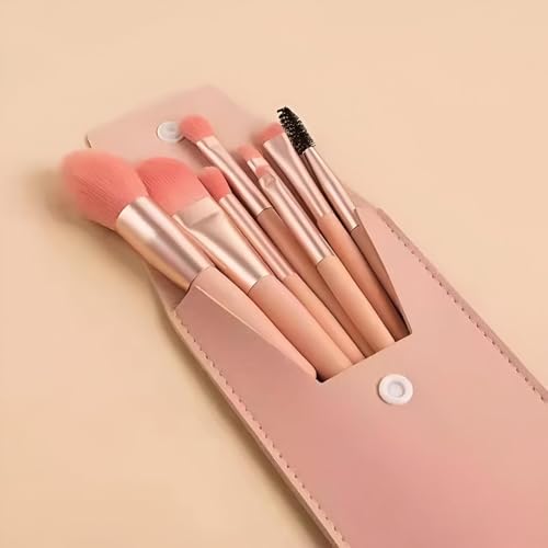 Generic - مجموعة مكياج للسفر - مجموعة فرش محمولة مكونة من 7 قطع مع محفظة لسهولة التخزين، مثالية لكريم الاساس والكونسيلر واحمر الخدود واستخدامات المكياج متعددة الالوان خلال الرحلات