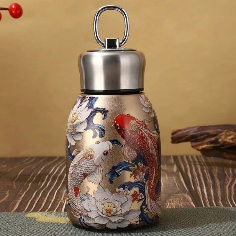 Generic - كوب سفر 260 مل، كوب قهوة ستانلس ستيل معزول بتفريغ الهواء مع حلقة تعليق، غطاء مانع للتسرب، كوب ساخن وبارد خال من BPA للمكتب وصالة الالعاب الرياضية والتنقلات، F-153B (بيج، سمكة)