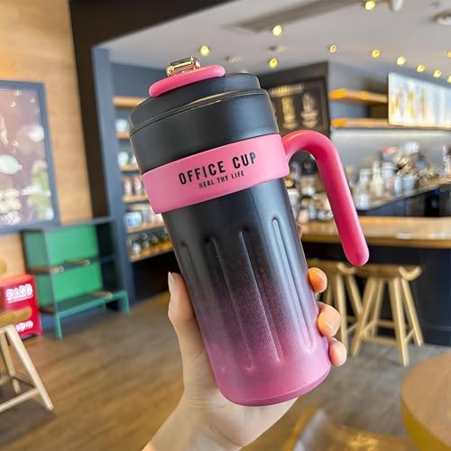 Generic - كوب سفر مصنوع من الفولاذ المقاوم للصدأ مع مقبض، عازل بتفريغ الهواء وشاشة رقمية لدرجة الحرارة، ثيرموس تخييم متعدد الألوان بغطاء مانع للتسرب للمشروبات الساخنة في الأماكن الخارجية