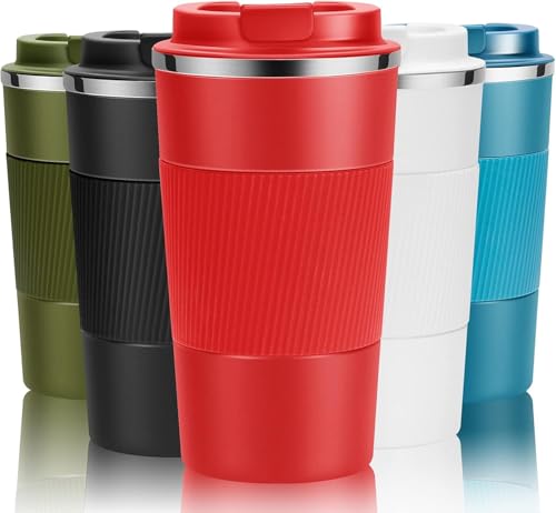 Generic - مج قهوة حراري للسفر قابل لإعادة الاستخدام، معزول بتفريغ الهواء ومصنوع من الفولاذ المقاوم للصدأ للمشروبات الساخنة والباردة (أحمر، 380 مل)
