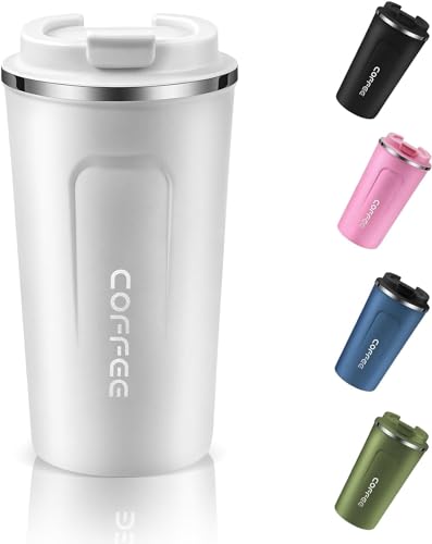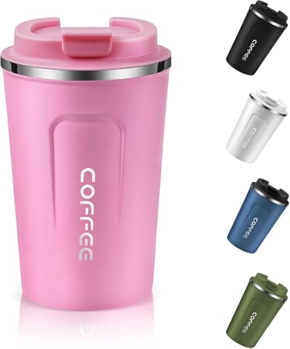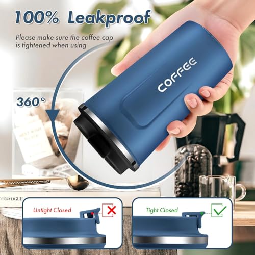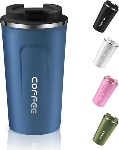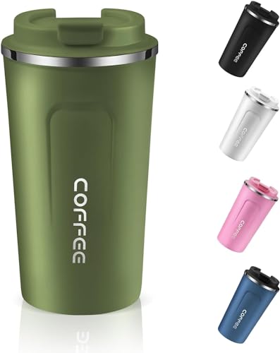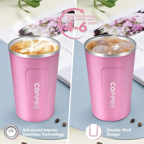 Generic - كوب قهوة معزول قابل لإعادة الاستخدام بغطاء مانع للتسرب للمشروبات الساخنة والباردة، مج قهوة حراري من الفولاذ المقاوم للصدأ للسفر والسيارة والهواء الطلق والنزهات والمكتب والمدرسة