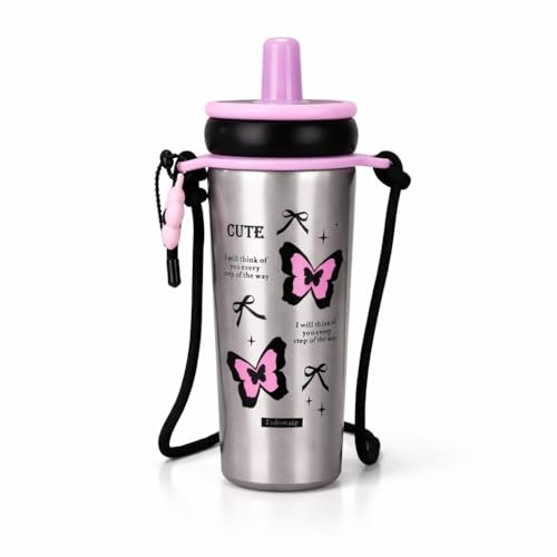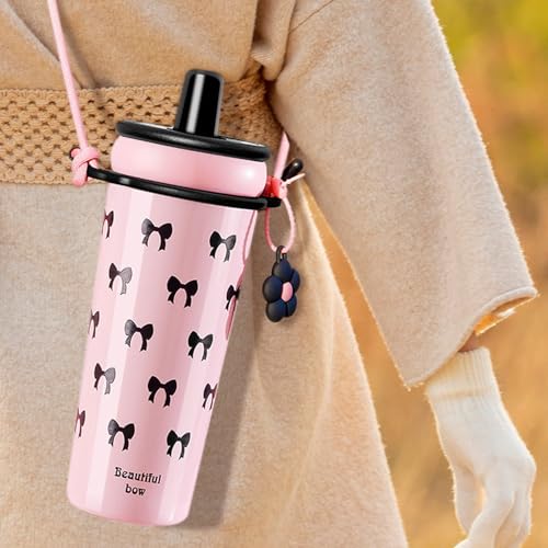 Generic - كوب سفر مع ماصة ومقبض حمل 720 مل - كوب معزول بتفريغ الهواء من الستانلس ستيل بجدار مزدوج مانع للتسرب للمشروبات الساخنة والباردة، خال من BPA، حزام قابل للتعديل وفلتر قابل للازالة، F-1547 (رمادي)