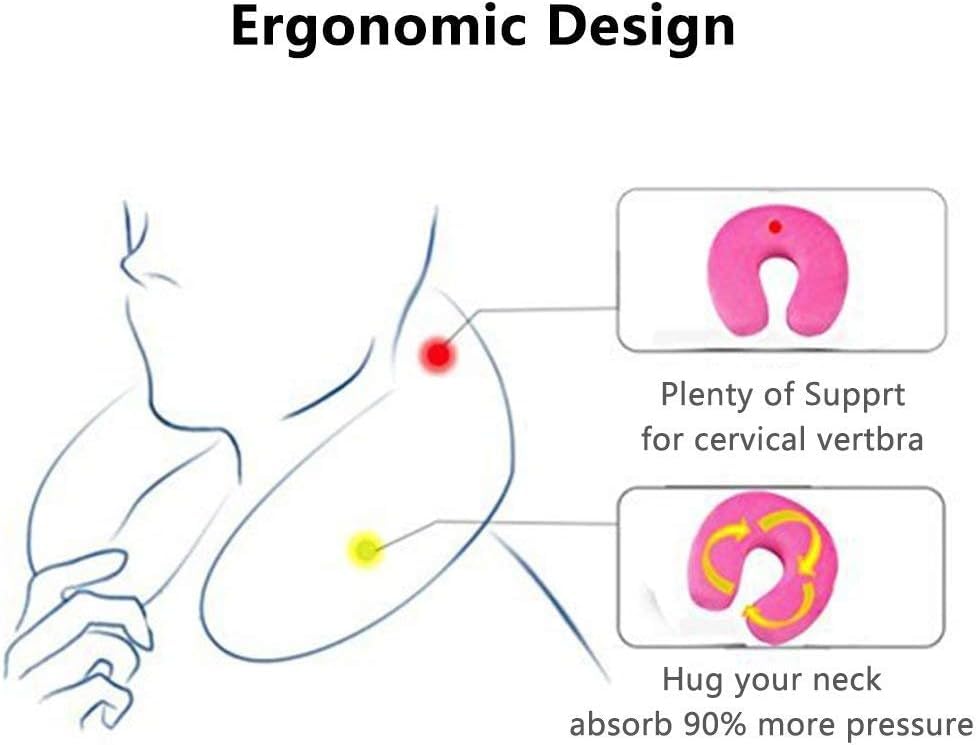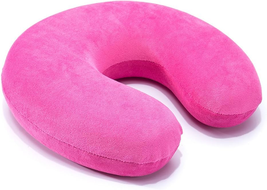 Generic - وسادة رقبة للسفر على شكل حرف U مصنوعة من قماش قطيفة ناعم وتوفر دعماً مريحاً للرقبة والرأس مناسبة للجلوس والسفر الطويل، متعدد الألوان، وردي