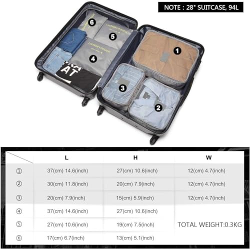 Generic - شنطة تنظيم للسفر 6 قطع مقاومة للميه لتخزين كل حاجة بترتيب ونظام تصميم ذكي خفيف الوزن يناسب كل مقاسات شنط السفر | من عام