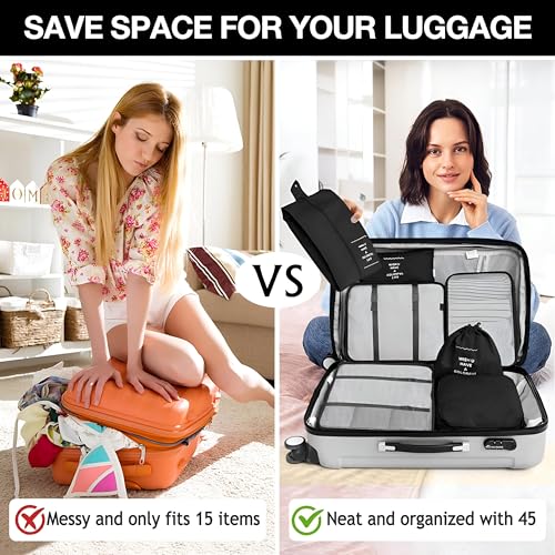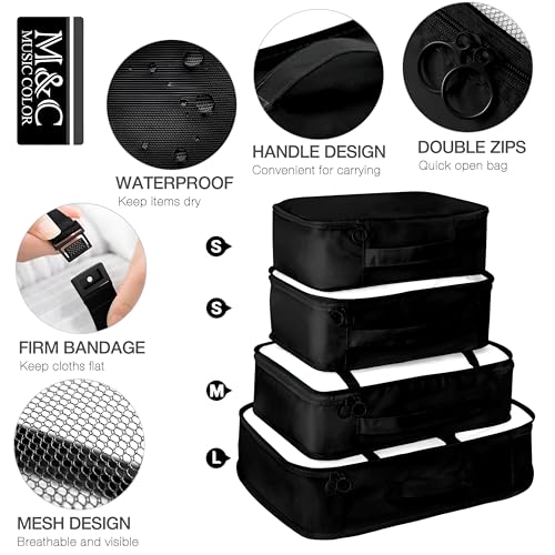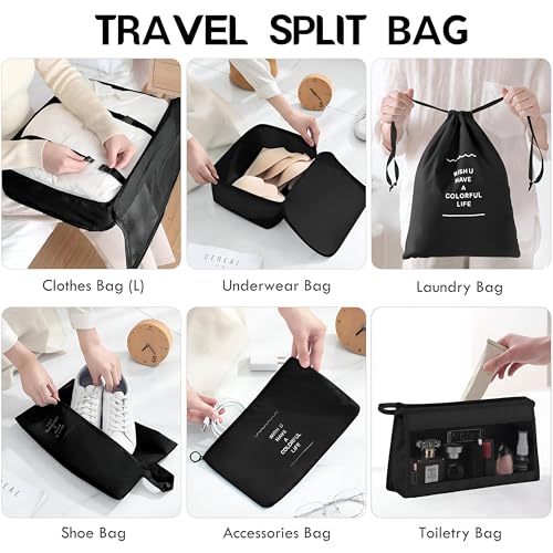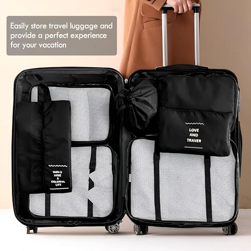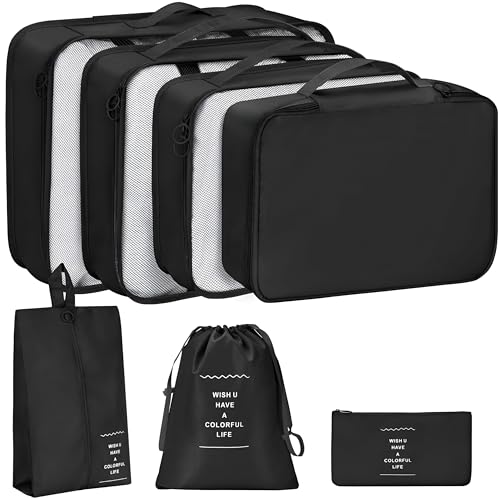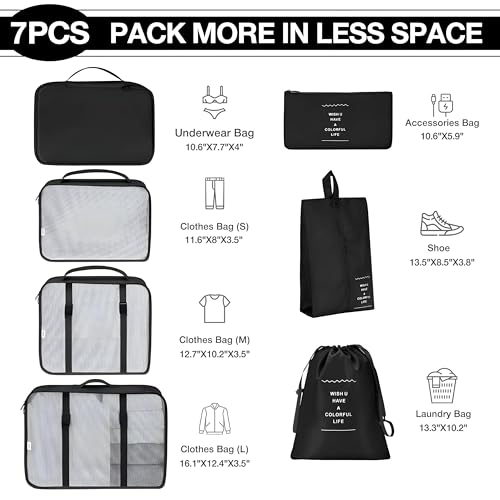 Generic - مجموعة مكعبات تعبئة للسفر - منظم اسود مقاوم للماء مكون من 7 قطع مع الواح شبكية للاحذية والغسيل والاكسسوارات، محسن لادارة الامتعة بكفاءة