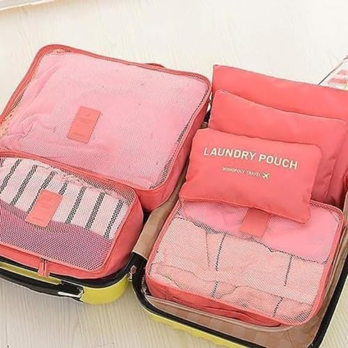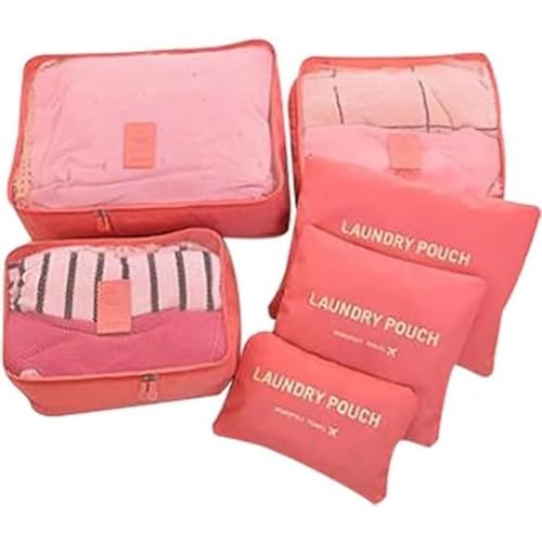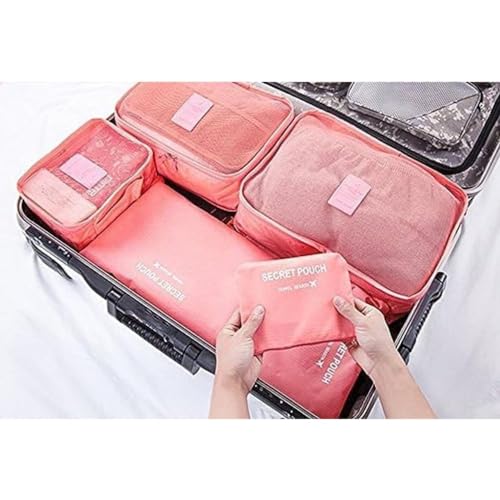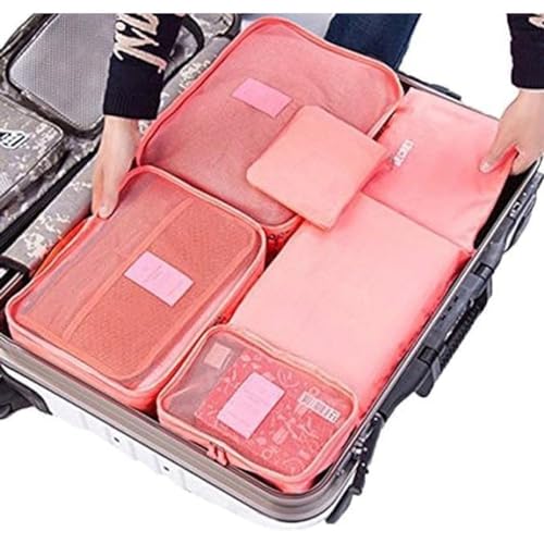 Spaceshoop - منظمات شنط السفر - 6 قطع من منظمات شنط السفر المحمولة القابلة لاعادة الاستخدام، تستخدم لتنظيم شنط السفر، شنطة تخزين ضاغطة، شنطة سفر بسوستة (زهري)