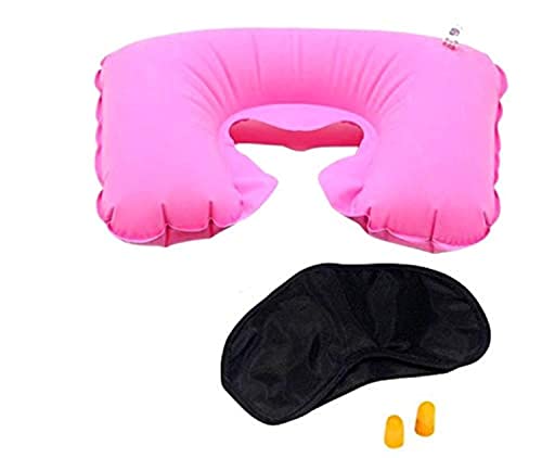 Other - طقم 3 في 1 وسادة للنوم السفر مع قناع للعينين و سدادات للأذن هواء- متعدد الألوان