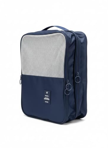 Spaceshoop - شنطة أحذية للسفر قابلة للطي ومقاومة للماء مع سوستة، شنط تعبئة محمولة خفيفة الوزن للأحذية والجولف وغيرها من الاكسسوارات الرياضية، 1 قطعة، لون أزرق، مقاس ميديوم M