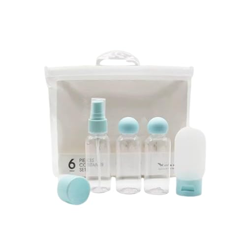Generic - مجموعة زجاجات ادوات الزينة بحجم مناسب للسفر، 6 قطع مع بخاخ وغطاء قلاب، شفافة مع اغطية بلون ازرق فاتح، مجموعة حاويات قابلة لاعادة الاستخدام مع شنطة تخزين