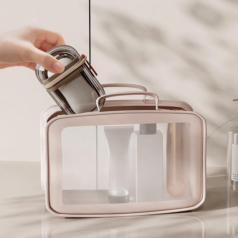 MisHarb - صبانة سهلة الحمل ومانعة للتسرب مع حافظة ذاتية التصريف مضادة للتنعيم مع غطاء مناسبة للحمام والاستحمام والتخييم والجيم والأماكن الخارجية من ميس هارب (لون شفاف)