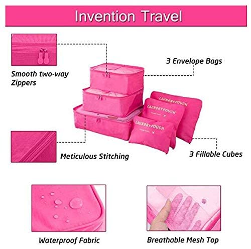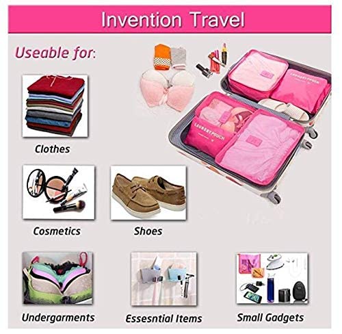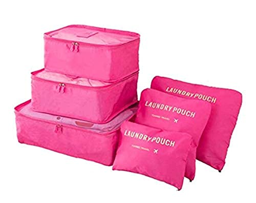 Spaceshoop - مجموعة شنط لتخزين وفرز الملابس للسفر - 6 قطع، نايلون، زهري