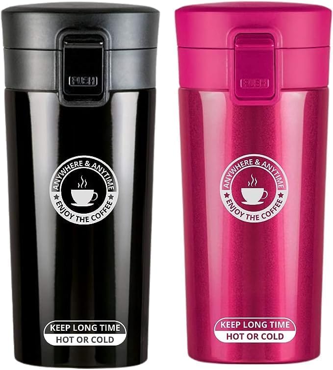 Generic - كوب قهوة حراري للسفر معزول بشفط الهواء بطبقة ستانلس ستيل مزدوجة محمول بفتحة واسعة مع غطاء 380 مل عرض القطعتين
