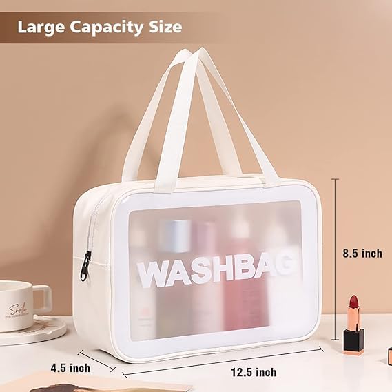 Generic - شنطة سفر لادوات الزينة للنساء والرجال ادوات تجميل شفافة غير لامعة مع مقبض عملي مستحضرات لتنظيم الاكسسوارات ابيض مقاس L بلاستيك بي في سي