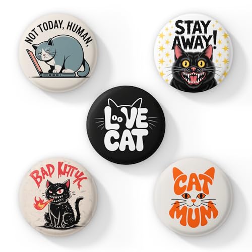 TRAVULLS - شارات زر بتصميم قطة مضحكة من ترافولز - مجموعة من 5 دبابيس قطط لطيفة وساخرة لمحبي القطط وشنطة الظهر او الجاكيت - هدية للامهات والقطط والمراهقين ومالكي الحيوانات الاليفة