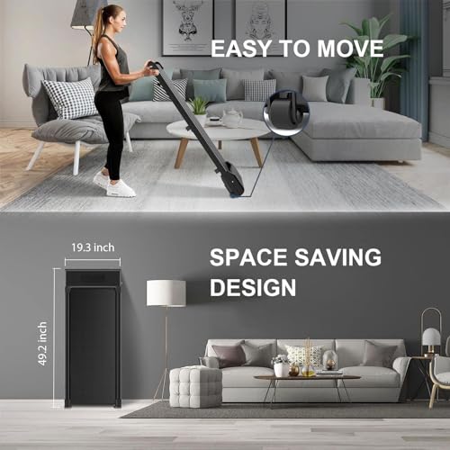 - لا يحتاج إلى تركيب وسهل النقل -- جهاز المشي لا يحتاج إلى تركيب، بحجم فقط 1.25 متر × 49 سم × 12.5 سم، سهل التخزين ومثالي للمساحات الصغيرة في المنازل والمكاتب. يمكن تخزينه تحت الطاولة أو السرير أو طاولة العمل، والعجلتان المدمجتان تسهلان نقله وحمله بكل سهولة.