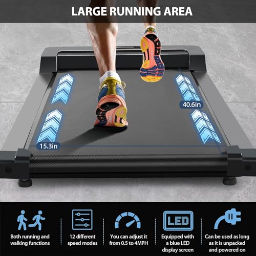 - ثلاثة مستويات للتمارين -- جهاز مشي منزلي محمول بنطاق سرعة يتراوح بين 1 إلى 4 ميل في الساعة، وهو مناسب للمشي والجري والهرولة. سرعات مختلفة تسمح لك باختيار التمرين وفقًا لحالة جسمك. مثالي للتمرين اليومي للحفاظ على النشاط في العمل.