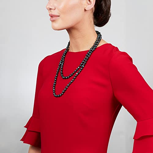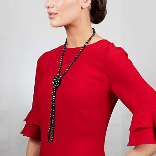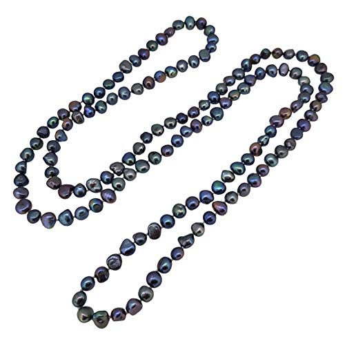 Treasure Bay - عقد انسق وكلاسيكي 5 في 1 من لؤلؤ المياه العذبة الطبيعي للنساء تريجرباي 120 سم - يقدم علبة مجوهرات هدية جميلة اسود