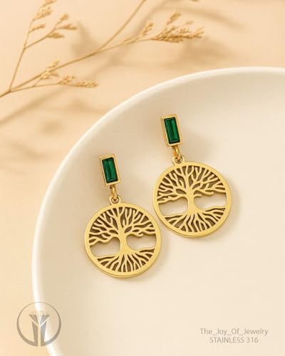 Generic - حلق ستانلس ستيل على شكل شجرة للنساء - ذهبي