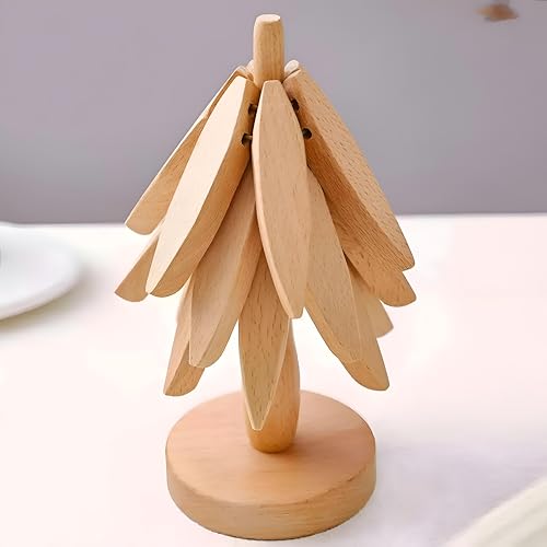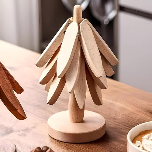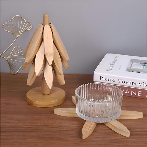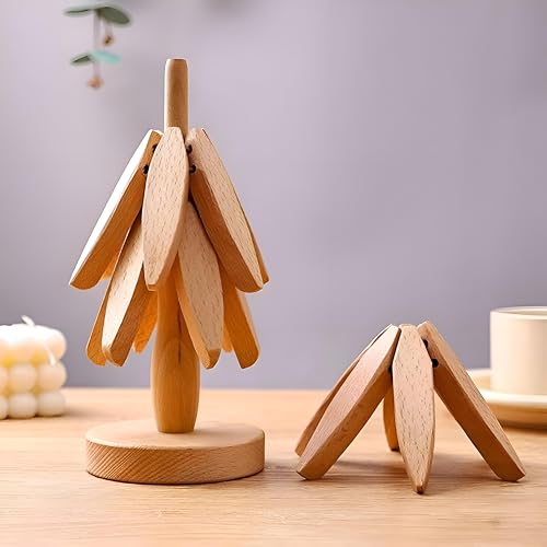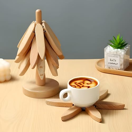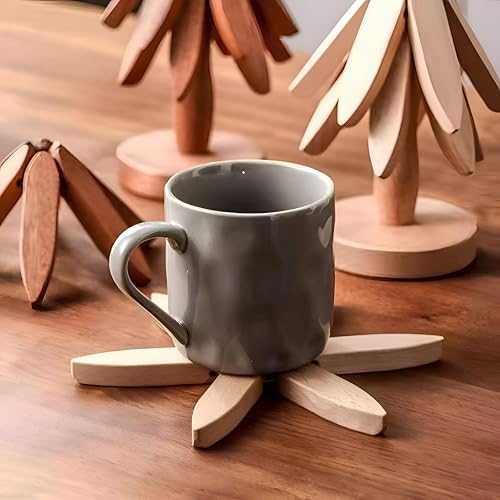 Generic - قواعد أكواب على شكل شجرة - قواعد أكواب من الخشب الطبيعي مع حامل مدمج، مثالية للأطباق الساخنة وأباريق الشاي وأدوات التقديم، قطر 9.5 سم (قطعة واحدة)