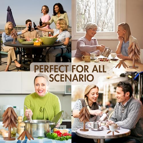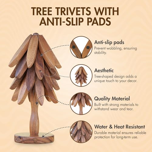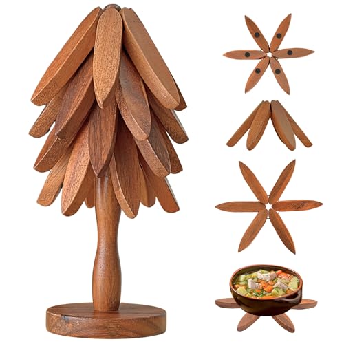 WinzMil - حوامل شجرة مع وسادات مضادة للانزلاق: قواعد اكواب خشبية فاخرة على شكل شجرة من خشب الجوز - حصائر قابلة للطي للاواني الساخنة والمقالي والاطباق والأكواب والاوعية والبرطمانات واباريق الشاي - ديكور مطبخ