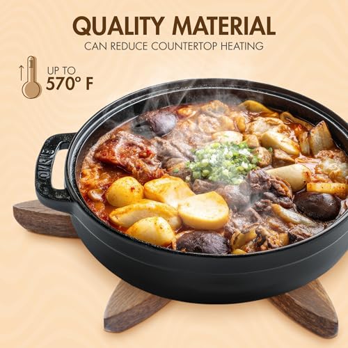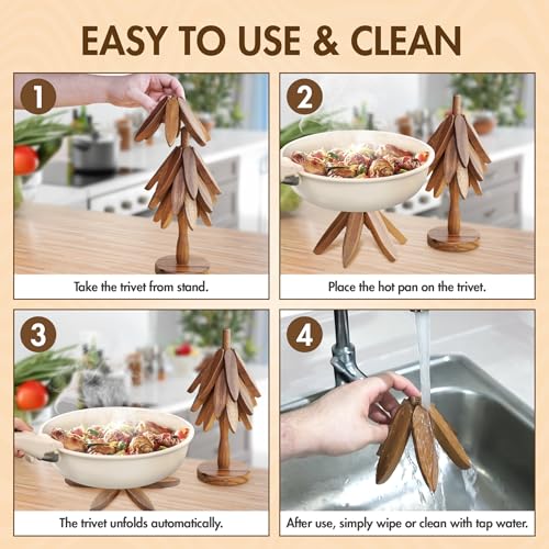 - وسائد مضادة للانزلاق وهيكل متين - وسائد مطاطية على كل فرع تمنع الانزلاق والخدوش، مما يحافظ على ثبات أواني الطهي. يضمن الخشب الصلب المرن سنوات من الاستخدام اليومي.