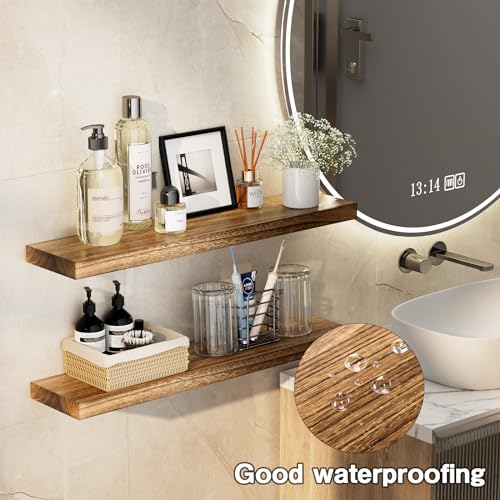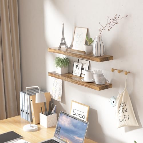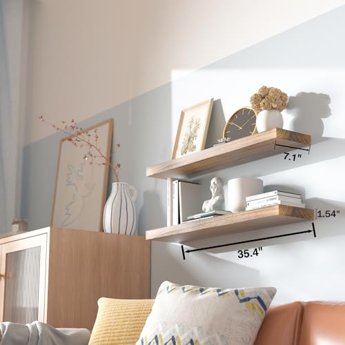 TREEMBER - أرفف خشبية عائمة للحائط من تريمبر، من خشب اولونيا الطبيعي، أرفف ديكور ريفية تثبت على الحائط لغرفة النوم وغرفة المعيشة والمطبخ (بني فاتح)، مقاس 90 سم
