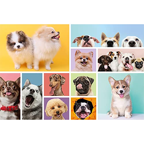 - يتكون البازل من 160 قطعة تشكل معًا صورة 410 × 275 ملم تتميز بمجموعة من صور الكلاب المرحة.