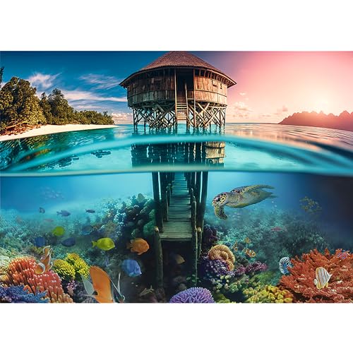 - يبلغ مقاس صورة الأحجية 480 × 340 ملم وتأتي بنمط النباتات والحيوانات التي تعيش في أعماق البحر.