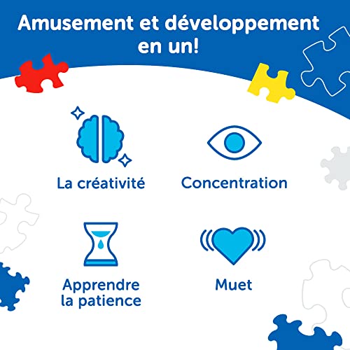 - تشجع الألوان الزاهية والرسوم التوضيحية الممتعة الأطفال على اللعب، كما أن الحجم الكبير للقطع يجعل من السهل تجميع الصورة