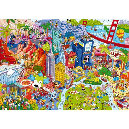 - بازل 500 قطعة يضم مشهدًا ملونًا بأسلوب كرتوني للولايات المتحدة الأمريكية.