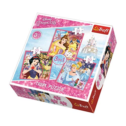 Trefl - بازل على شكل اميرات ديزني 3 في 1 من تريفل، 200×195 ملم - 106 قطعة