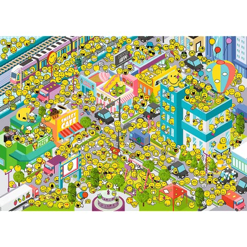 - مشهد نابض بالحياة مع وجوه مبتسمة مخفية للعثور عليها.